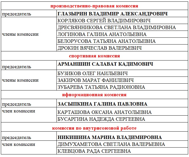 Состав комиссий Профкома